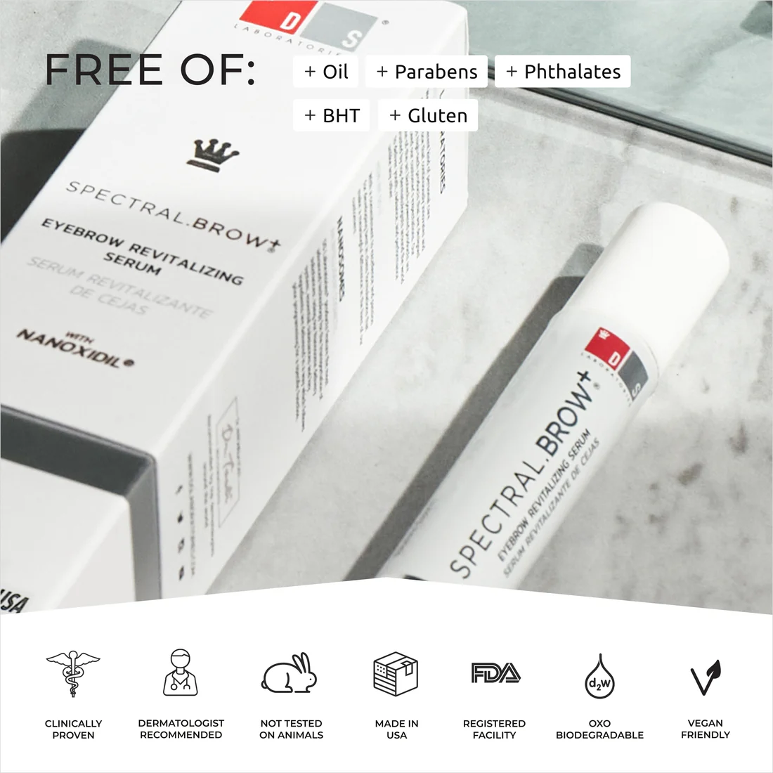 – غیرمحرک: فرمولاسیون باکیفیت Spectral.BROW رشد ابرو را بدون ایجاد خارش، قرمزی یا تحریک تضمین میکند.